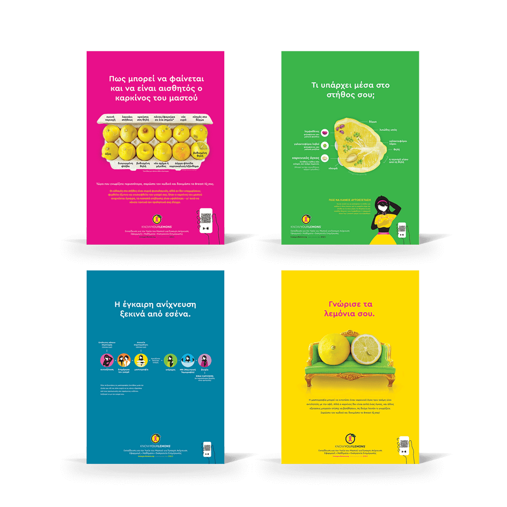 Save when you purchase the full "Know Your Lemons" poster campaign including: the famous 12 signs of breast cancer, what to feel for poster, steps for detection poster, and the cute lemons on the sofa poster.