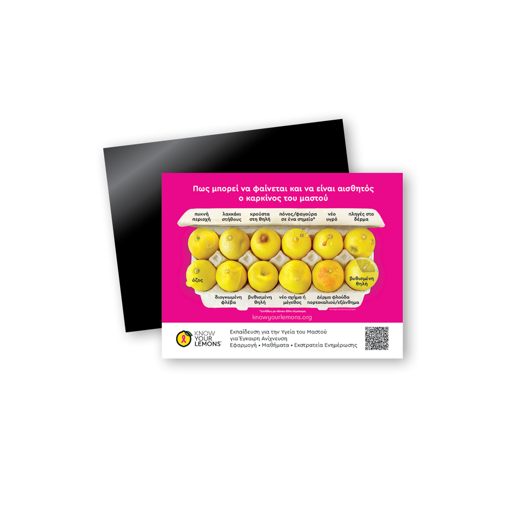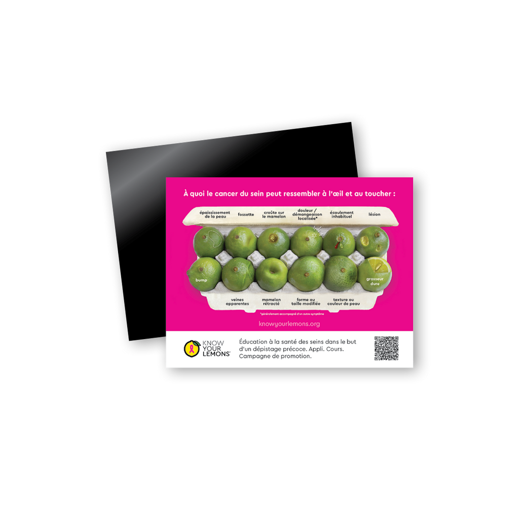 A great way to remember to Know Your Lemons® year-round! These breast cancer awareness magnets come in packs of 10 and are a favorite item for giveaways and women's health fairs. A magnetic way to spread breast cancer awareness!