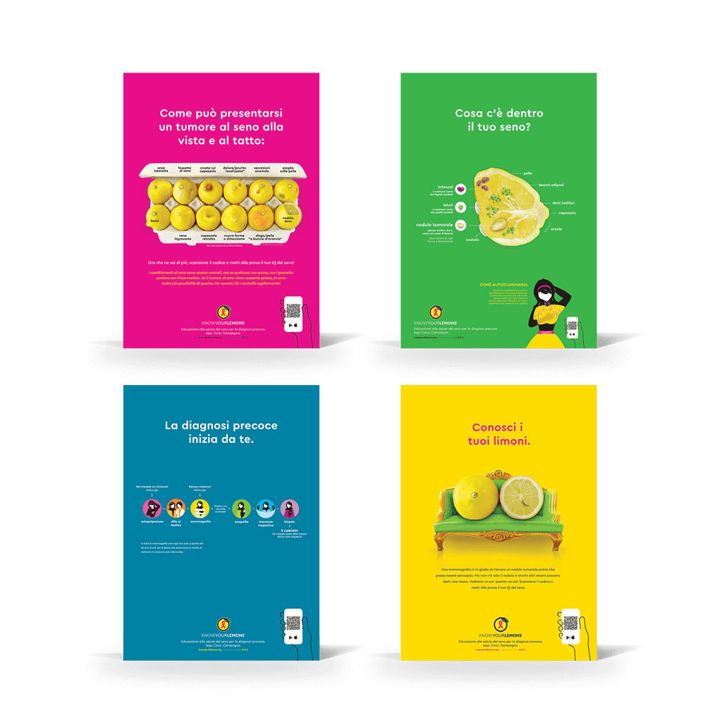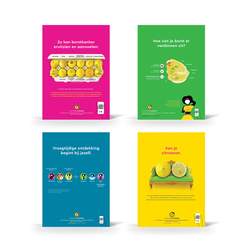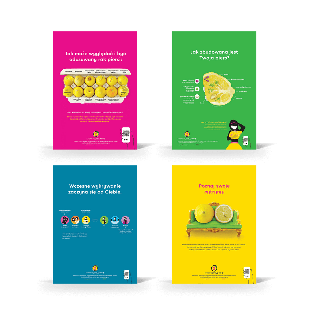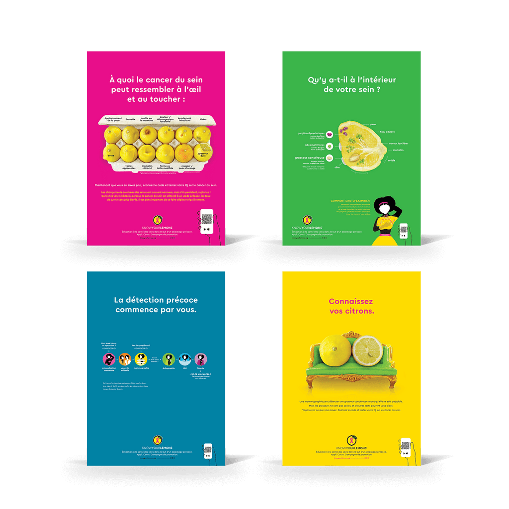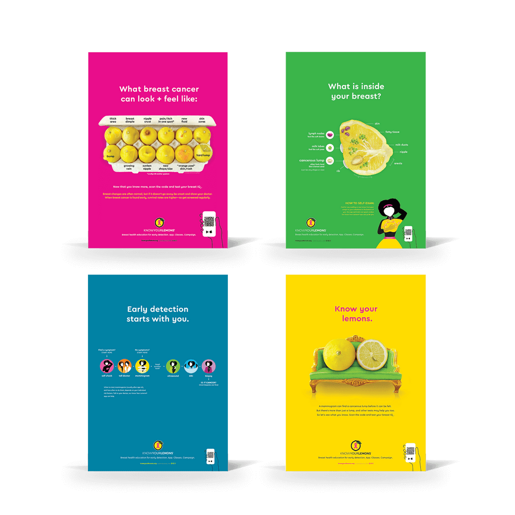 Save when you purchase the full "Know Your Lemons" poster campaign including: the famous 12 signs of breast cancer, what to feel for poster, steps for detection poster, and the cute lemons on the sofa poster.