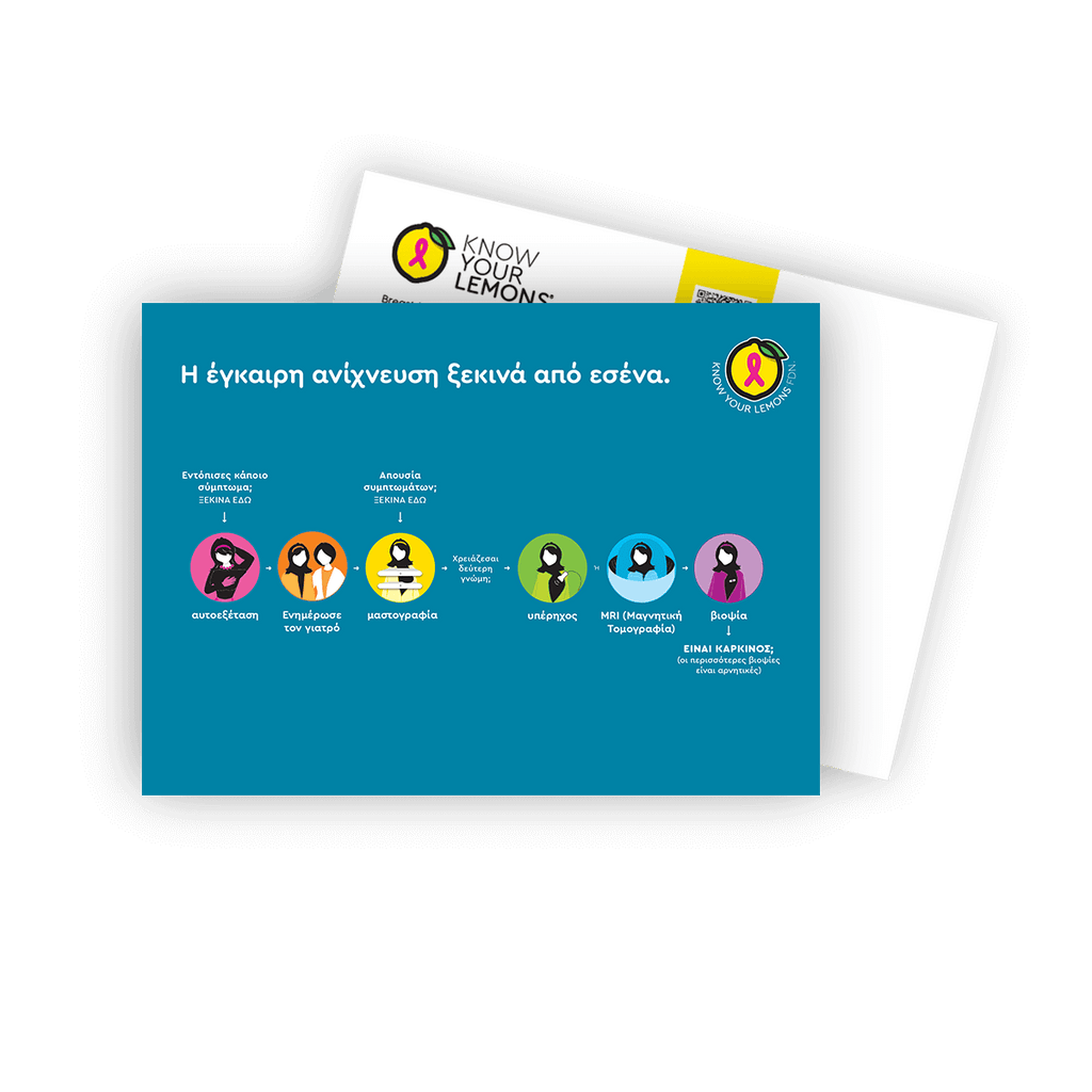 Make breast cancer screening easier to understand for your patients. Never has it been so simple to show how breast cancer is found than with this breast cancer detection path postcard. Breast cancer awareness that you can hold in your hand!