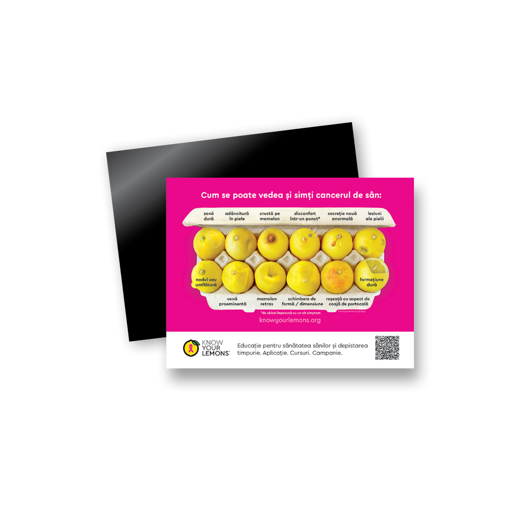 A great way to remember to Know Your Lemons® year-round! These breast cancer awareness magnets come in packs of 10 and are a favorite item for giveaways and women's health fairs. A magnetic way to spread breast cancer awareness!